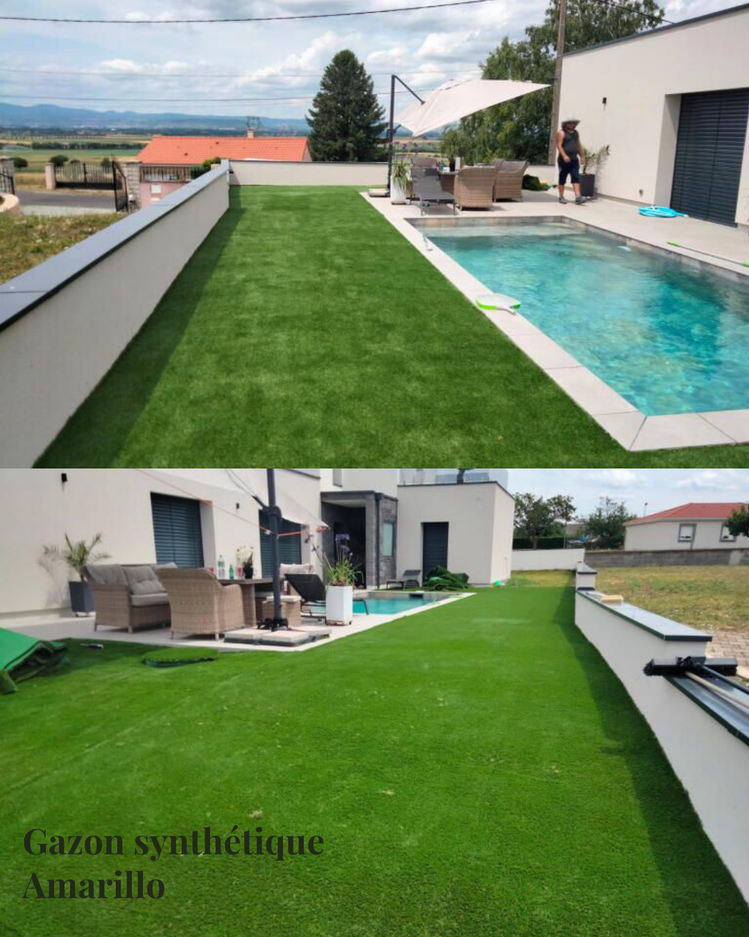 Nous sommes ravis de partager avec vous la réalisation de l’un de nos clients, qui a récemment installé le gazon synthétique AMARILLO chez lui, un produit phare de notre gamme.